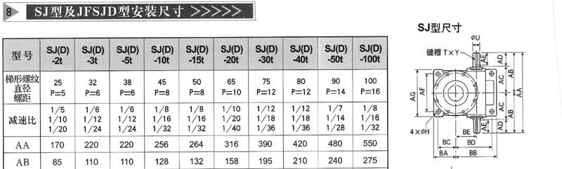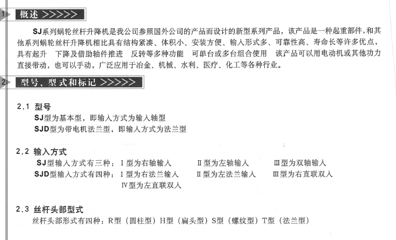 SJ蝸輪絲桿升降機(SJ系列螺旋升降機)是我公司參照國外公司的產品而設計生產的新型蝸輪絲桿升降機。與其他蝸輪升降機相比具有結構更加緊湊、安裝方便、體積小、輸入形式多樣、可靠性高、壽命長等許多優點。