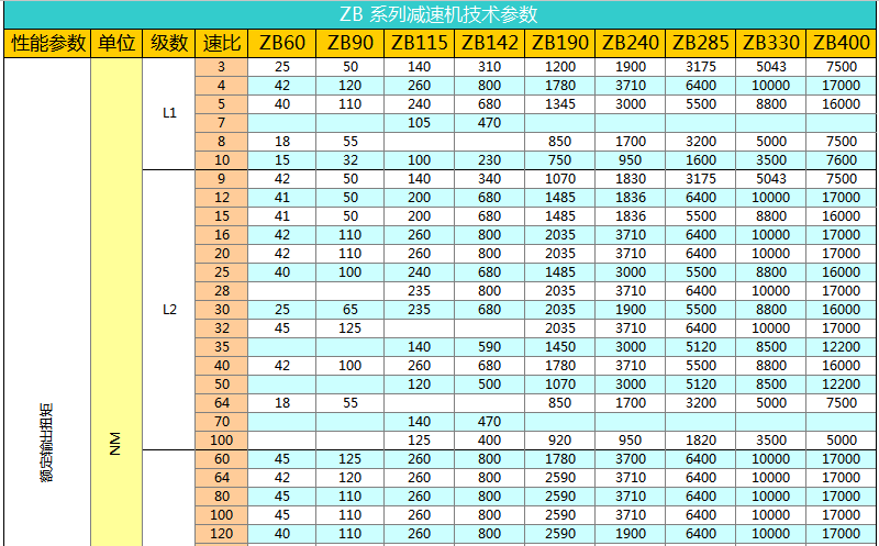 為方形法蘭設計,安裝尺寸簡單方便。型號分:ZB40、60、90、115、142、190、240、280、330、400機座型號。速比:1-1000有19種比速可選擇;分一、二、三級變減速傳動;精度:一級傳動精度在6-8弧分,二級傳動精度在8-10弧分,三級傳動精度12-15弧分;等1000多種規格。