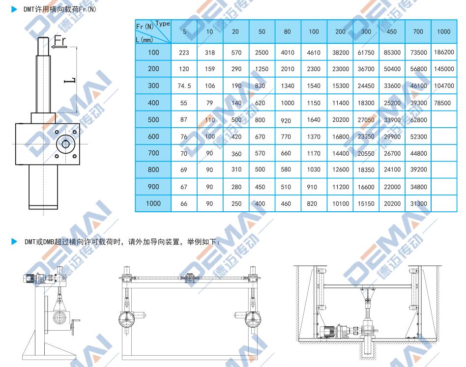 絲桿升降機一般情況下是不允許有橫向載荷的。因為絲桿不承受側向力,如果側向力大會影響傳動效率甚至造成設備的損壞,造成不必要的損失。那么如果必須有橫向載荷的話我們怎么應對呢?我們德邁傳動來給大家講解一下。