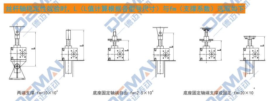 絲桿升降機在選型過程中,不僅需要考慮行程,負責,速度,側向力等等數據做參考,同時還要根據客戶方的具體使用環境,來考慮絲桿軸穩定性和絲桿軸轉速效驗,這樣才能使升降機在使用過程中不會出現問題。具體系數的選取如下圖。