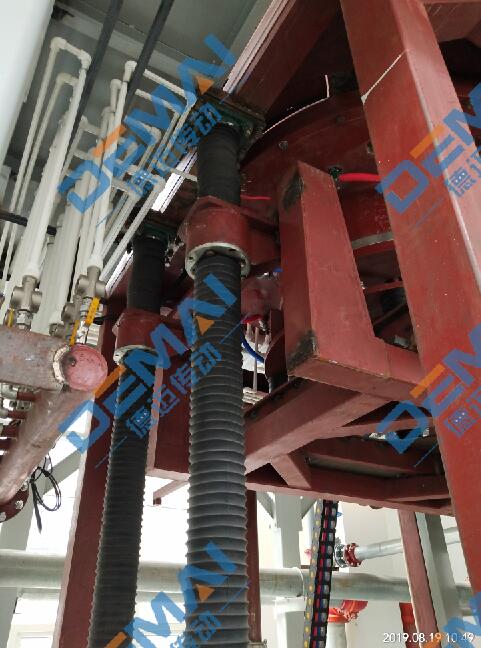這種材料的生產設備有一個生產環節使用到了我們的螺旋升降機,我們為其設計的是四臺聯動的使用方案,并且配備電控箱來進行精準的位移以及啟停控制,可以更方便的控制熔爐進行升降運動,整體方案如下圖。 如圖所示,整體方案啊采用的是螺旋升降機螺母運動的形式,將四臺升降機的螺母分別固定在工件上,使用電機作為驅動源,同時電機連接減速機,減速機兩個輸出軸分別連接兩邊的轉向箱,通過轉向箱將動力分配給四臺升降機,采用一個驅動源來控制,可以保證四臺升降機做同步穩定的升降運動。使用接通電源,升降機開始運轉,螺母將會帶動工件做上升下降的運動,來達到客戶的要求。